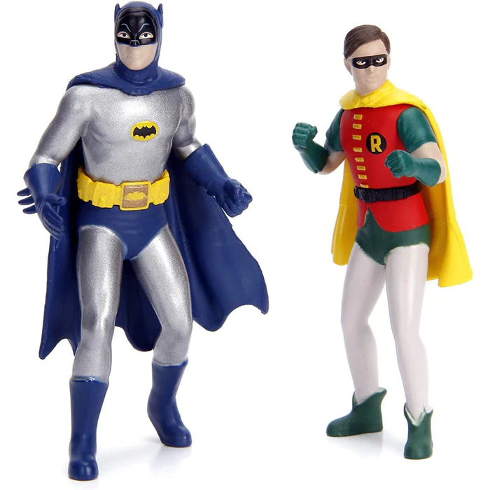 Characteristics: Featuring a high quality die-cast metal body, rubber tires, and light-up features, this 1:18 scale vehicle is a detailed and accurate replica of the iconic Batmobile from the 1966 Batman TV show! Also includes die-cast Batman and Robin figurines. Door, hood and trunk open, and headlights, taillights and siren light up. Collector box packaging.