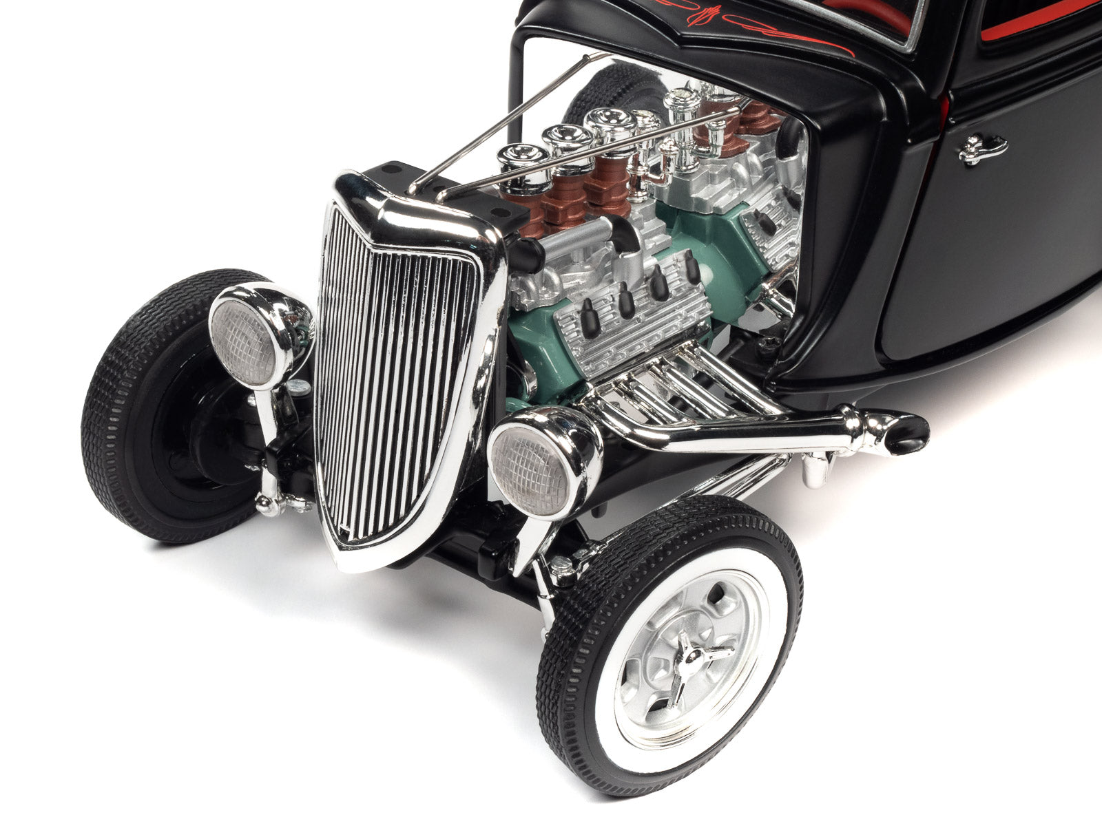 Returning from WWII and getting back to work with some money in their pockets, Americans discovered a new pastime...hot rodding. The 1930s-era Ford was ripe for the picking. By the late 1940s, the Model Bs and Model 18s were well over a decade old, making them cheap to buy with parts readily available. Hot rodders bought them up in droves wrenching in their garages turning these once-tame suburban coaches into fire-breathing monsters! The hot rodding trend continued strong well into the 1960s. Even today, the 1934 Ford 3-window coupe remains one of the most sought-after hot rodding platforms.