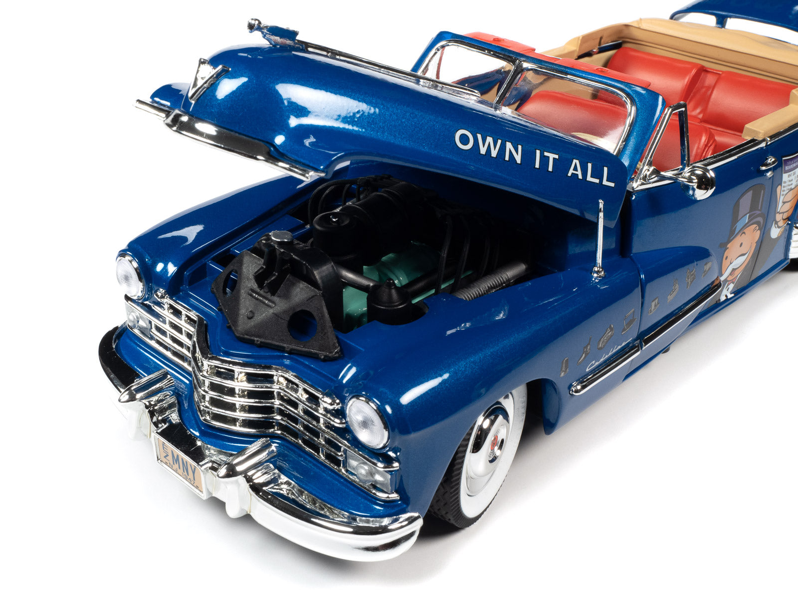 Auto World pays homage to Rich Uncle Pennybags himself by replicating his bold blue Cadillac emblazoned with none other than a graphic of himself holding the deed to Boardwalk! This low-slung chariot oozes opulence with its rich metallic paint, supple red interior, and enough chrome brightwork for three cars. We’ve even included a resin figure of Mr. Monopoly proudly posing on a stack of cash—surely something out of his own dreams!
